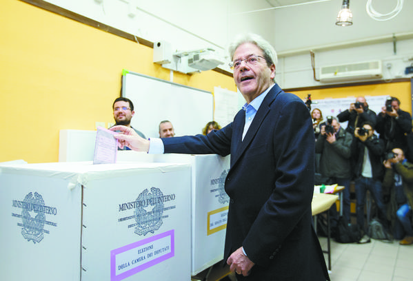 当地时间3月4日,意大利总理真蒂洛尼在意大利罗马一处投票站投票。意大利于4日迎来议会选举。
