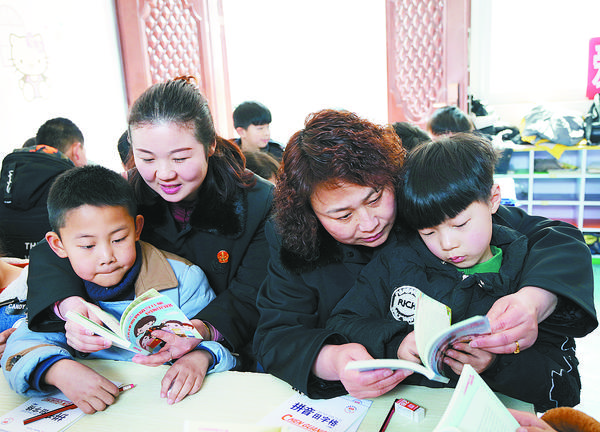 3月5日,太康县人民法院的女法官积极开展“送法进校园”活动,帮助学生提高自我保护能力,以实际行动迎接“三八”妇女节的到来。图为女法官向学生讲解普法漫画口袋书中的内容。通讯员 李康 摄