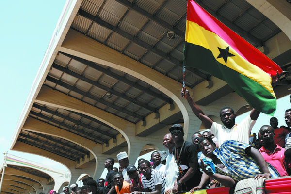 当地时间3月6日,在加纳首都阿克拉独立广场,参加庆祝活动的民众挥舞加纳国旗。 加纳6日在首都阿克拉独立广场举行游行及阅兵式,庆祝独立61周年。1957年3月6日,“黄金海岸”宣布独立,改国名为加纳。