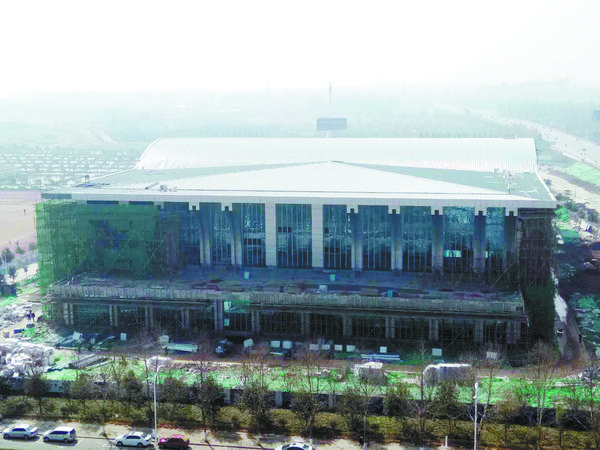承办省十三运会的备用场馆——淮阳县体育中心体育馆,项目主体基本完工,屋面拉膜钢网架焊接完成80%,正在安装看台,灯光、音响、通风设备、地板已订购,预计4月底可建成交付使用。