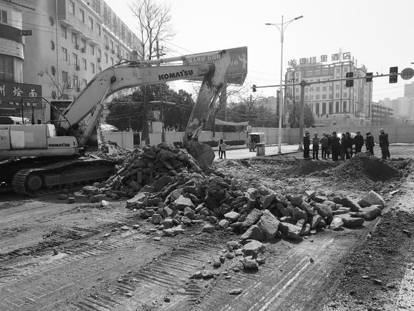 在大庆路与交通大道交叉口附近,记者看到,一辆大型挖掘机正在施工,挖斗下方是已经挖开的路面。“由于原有路基损毁严重,这条路需要重新铺设路基。新路基先是铺设一层60厘米的砖渣,紧接着再铺设两层18厘米的灰土和两层18厘米的水泥,最后再在上面铺两层油面。只有路基打牢固,道路使用年限才能长久。”正在施工现场召开例会的周口市城市管理局副局长喻龙海说。