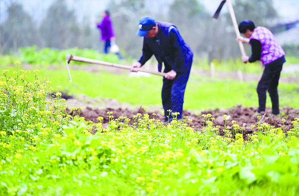 3月13日,湖北省宣恩县珠山镇莲花坝村农民在田间劳作。早春时节,农民抢抓农时开展春耕,田间地头一派繁忙景象。