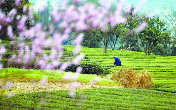 3月13日,湖北省恩施市芭蕉侗族乡高拱桥村的茶农在采春茶。连日来,湖北省恩施土家族苗族自治州恩施市芭蕉侗族乡境内山花烂漫、春茶吐新绿,当地茶农忙着抢采早春茶上市销售。新华社发
