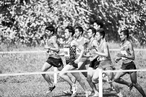 当日,中国选手彭建华(右二)在男子成年组12公里越野赛中。