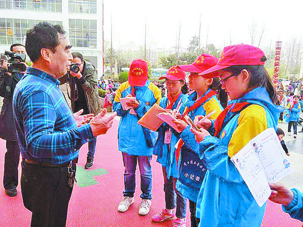 活动现场,来自周口市社会武术团体的8位老拳师及文昌小学的6名学生分别展示了精彩的武术表演,刚劲有力的武术动作气贯全场,赢得了现场师生的热烈掌声。了解到这些身手矫捷、功力不凡的老拳师大都已年过半百时,该校小记者不禁竖起大拇指。看过李纪龙校长的武术表演,小记者白茗尹上前采访:“李校长,您觉得习武辛苦吗?习武这些年您有什么收获?”李纪龙语重心长地说:“习武虽然很辛苦,但是只有把身体练得棒棒的,将来才能保卫国家!”