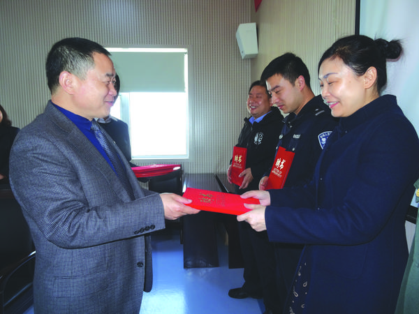 3月13日,中国人寿保险股份有限公司周口分公司举办了“社会监督员座谈会”,为来自金融系统、新闻媒体、公安局等单位的20余名代表颁发了社会监督员聘书。该公司始终秉承“成己为人、成人达己”的企业文化,把维护企业形象,改善保险服务环境放在企业发展的首位,维护客户的合法权益,提高客户满意度,建立有利于公司持续健康发展的社会监督机制。图为该公司相关负责人向社会监督员颁发聘书。
