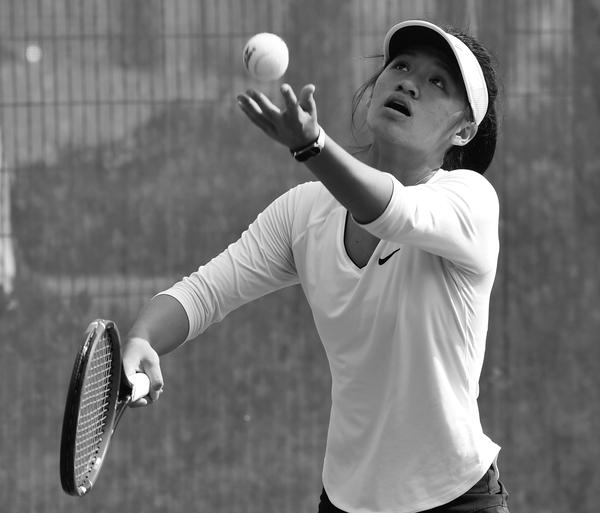 图为当日中国选手韦思佳在比赛中发球。