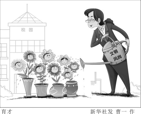 什么样的校园才是文明校园?如何创建文明校园?日前,荣膺首届“全国文明校园”称号的494所学校的答案是,立德树人,帮助学生“扣好人生第一粒扣子”,营造文明风尚,乃校园建设第一要务。 新华社发 曹一 作