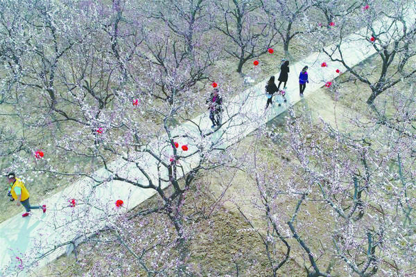 3月24日,游客在巨鹿县巨鹿镇西韩庄村杏林内游览。连日来,随着气温回升,河北省巨鹿县5万余亩杏花相继开放,吸引了众多游客前来踏春赏花。 新华社发