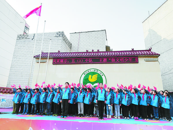 本报讯 为推动全校学生文明意识的提高和文明行为的养成,提高学生综合文明程度,营造整洁、有序、和谐的校园氛围,发扬中华传统美德。3月26日,周口七一路一小开展了“做文明少年 扬中华美德”主题升旗仪式。