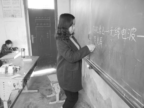 在李埠口乡苑老小学的一间教室内,武二玲正站在讲台上,手指内扣,用手指背面顶着粉笔写字(如图)。“因为得病,最近几年武老师的手指严重变形,她已经不能像正常人一样捏着粉笔写字了。”苑老小学校长苑力杭告诉记者。