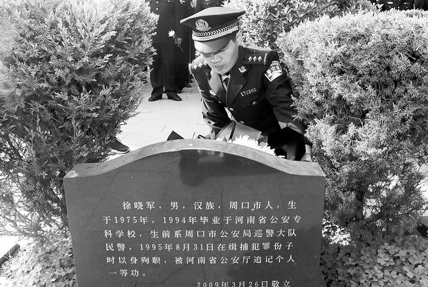 徐晓军,男,周口市人,生于1975年,1994年毕业于河南省公安专科学校,生前系原周口市公安局巡警大队民警,1995年8月31日,在缉捕犯罪嫌疑人时以身殉职,被河南省公安厅追记个人一等功。