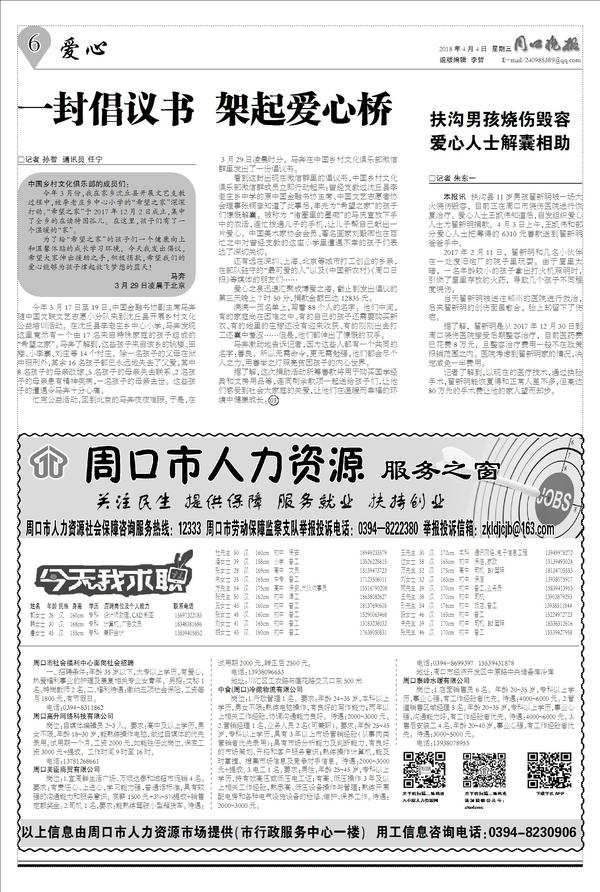 本报讯 扶沟县11岁男孩翟新明被一场大火烧伤毁容,目前正在周口市烧伤医院进行恢复治疗。爱心人士王凯伟知道后,自发组织爱心人士为翟新明捐款。4月3日上午,王凯伟和部分爱心人士把筹得的6310元善款送到翟新明爸爸手中。