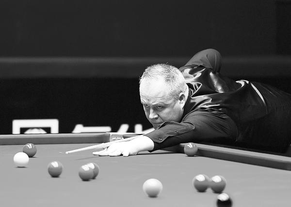图为当日希金斯在比赛中。