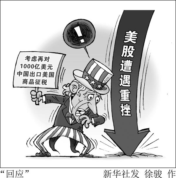 美国政府称考虑再对中国1000亿美元出口商品加征关税,令投资者对中美爆发大规模贸易冲突的恐慌情绪加剧,纽约股市6日遭遇重挫,三大股指收盘跌幅均超过2%。 新华社发