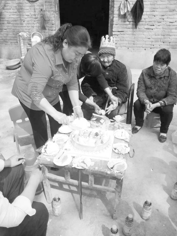 韩宇南在与村民交谈中得知,4月11日是高素真老人的生日。他早就萌生了为老人过生日的念头,因为工作太忙,这个愿望一直没有实现。今年又到了4月份,韩宇南早早地在一家面包店为老人订了一个生日蛋糕,准备在老人生日当天送过去。可是,老人生日当天正赶上市脱贫攻坚先进事迹报告团前往扶沟县作报告,他作为报告团成员就无法赶往太康。就在韩宇南左右为难时,他的妻子潘丽英愿意去为高素真老人过生日,帮丈夫完成心愿。