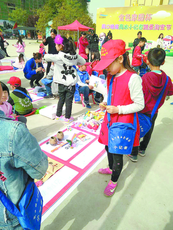 4月14日、15日,周口中心城区和项城、商水、西华三县市的近500名周口报业全媒体小记者参加了换物交友大会。很多不想再玩的玩具、不想再读的图书等等,通过孩子们之间的交流和交换,找到了自己的新主人。一名小记者家长说:“我是陪同儿子第一次参加换物活动,他今天不但和陌生小朋友成功交换了五六件东西,还锻炼了口才,收获了友谊,结交了新朋友!”
