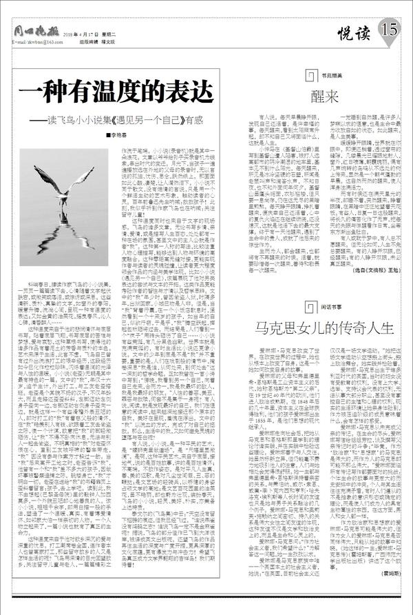 料峭春日,捧读作家飞鸟的小小说集,一页页一篇篇读下去,心情随着文字起伏跌宕,或微笑或落泪,或惊讶或深思。这些清新、质朴、真挚的文字,如窗外的春阳,暖意升腾,流淌心间,呈现一种有温度的表达;又如金黄的油菜花,摇曳春风,沁人心脾,清香醉人……