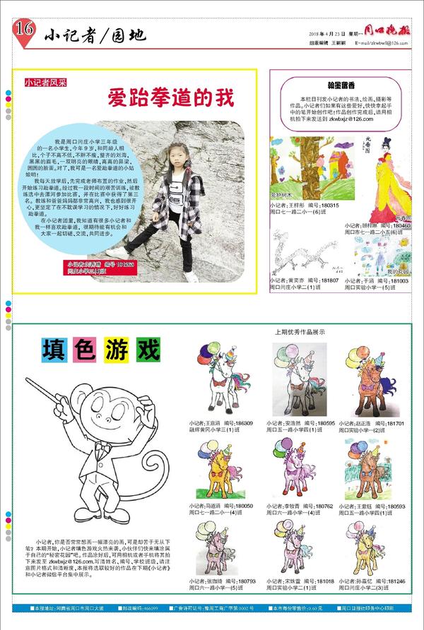 本栏目刊发小记者的书法、绘画、摄影等作品。小记者们如果有这些爱好,快快拿起手中的笔开始创作吧!作品创作完成后,请用相机拍下来发送到 zkwbxjz@126.com