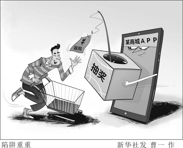 此类购物返现的网络商城“玩法”大同小异,陷阱重重:似传销、涉欺诈、高溢价、疑暗箱。新华社发 曹一 作