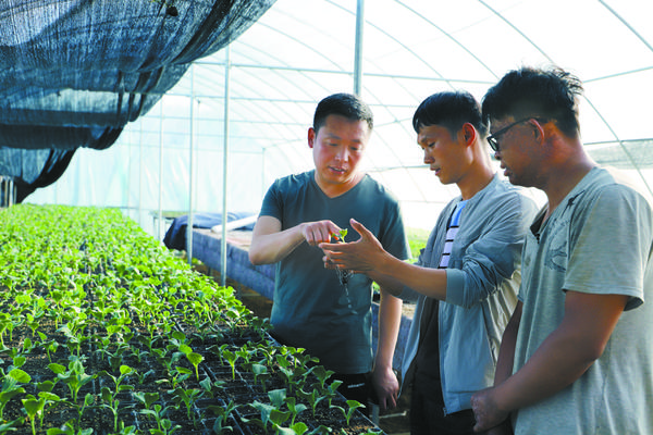 “我已经看到了,‘左盟主’,你的这棚“锦霞8号”西瓜我订了,10天后去采摘。”大学生创业联盟平顶山种植基地的盟友通过智能温室视频系统看到左明飞大棚里的西瓜后,第一时间下了订单。“左盟主”是大家在“豫艺彩虹瓜大创联盟”微信群里对左明飞的称呼。在河南农业大学园艺学院马长生教授的指导下,以左明飞为首的“三剑客”种出了白籽南瓜、单蔓单瓜实现了亩产2000个、单蔓双瓜均匀地控制在每个瓜6斤以内……“三剑客”不但把设计大棚的核心技术教给大学生创业联盟成员,而且也教他们种植技术。目前,大学生创业联盟成员每季度都会在左明飞的大棚里聚上两三次,研究市场、技术和新品种。