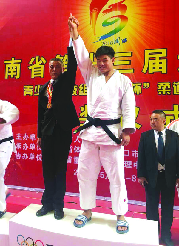 5月3日,在省十三运会青少年竞技组柔道比赛男子甲组+90公斤级决赛中,周口代表队的李慧林一路过关斩将,将金牌毫无悬念地收入囊中,履行了4年前他和恩师崔仲保的夺金约定。