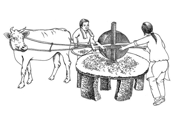 那晚上,石磙嫂抱住推磨棍不松手,一口气把俺家的粮食磨完。