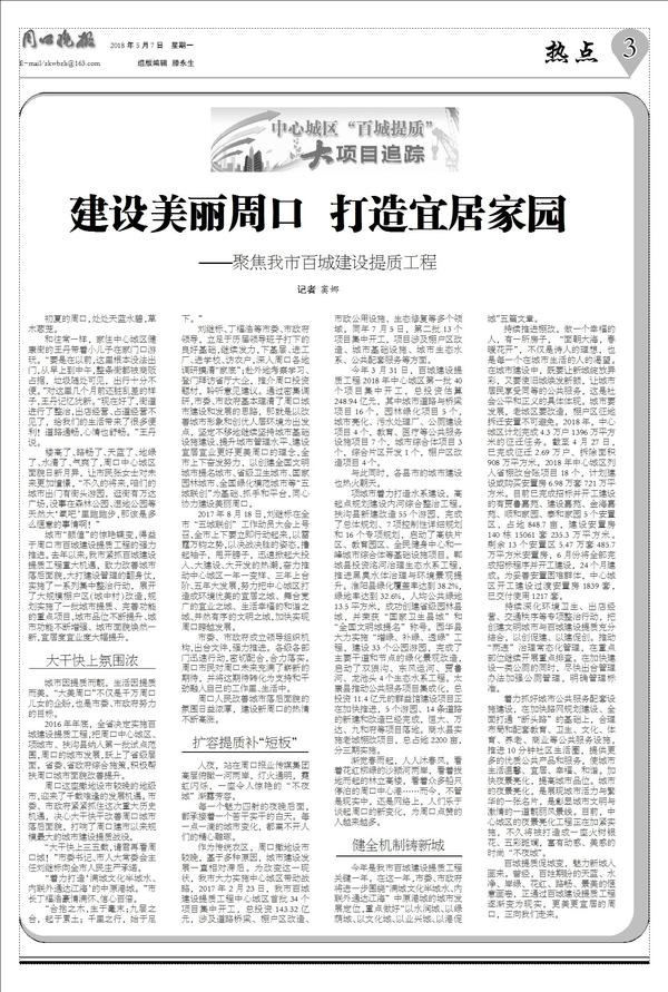 城市“颜值”的惊艳蝶变,得益于周口市百城建设提质工程的强力推进。去年以来,我市紧抓百城建设提质工程重大机遇,致力改善城市落后面貌,大打建设管理的翻身仗,实施了一系列集中整治行动,展开了大规模棚户区(城中村)改造,规划实施了一批城市提质、完善功能的重点项目,城市品位不断提升、城市功能不断增强、城市面貌焕然一新,宜居度宜业度大幅提升。