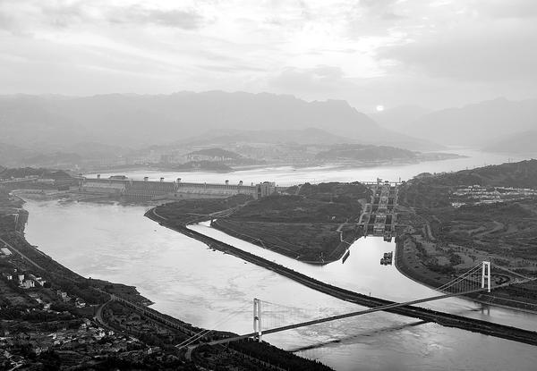 图为5月7日在湖北宜昌市三斗坪镇航拍的三峡大坝。