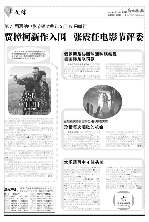 5月8日晚,第71届戛纳电影节在法国南部城市戛纳开幕,导演贾樟柯新作《江湖儿女》入围,演员张震担任电影节评委,颁奖典礼将于5月19日举行。