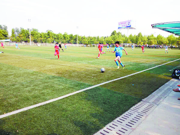 本报讯 5月10日下午,在省十三运会青少年竞技组男足乙组A组比赛第六轮对决中,身穿蓝色队服的周口代表队对阵身穿红色队服的许昌代表队(如图),结果以2∶3的成绩憾败。