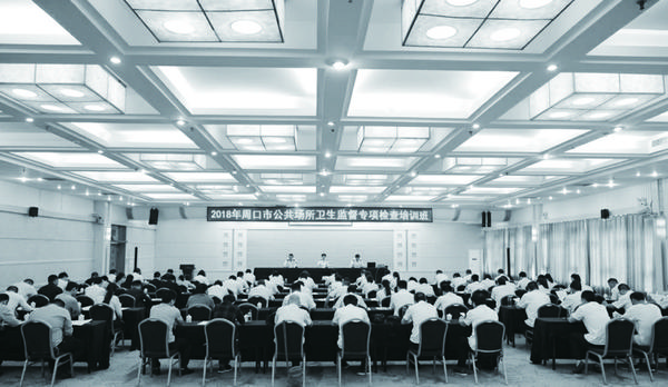 为进一步提升公共场所卫生监督管理水平,全面完成河南省2018年集中空调通风系统和游泳场所卫生专项监督检查任务,加强公共场所卫生事中事后的监管,5月9日上午,周口市卫生计生监督局在周口饭店举办了周口市公共场所卫生监督专项检查培训班。记者 史书杰 通讯员 孟景绍