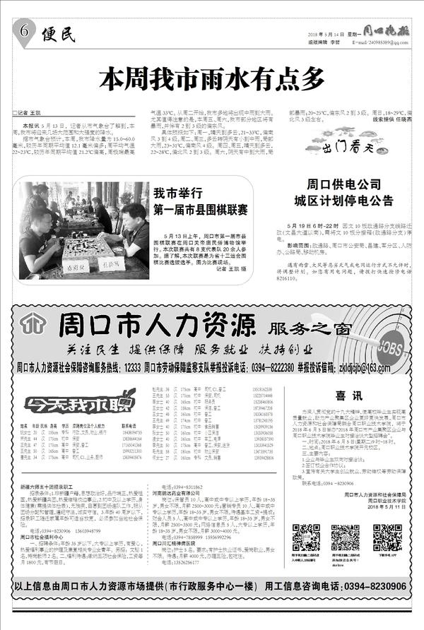 本报讯 5月13日,记者从市气象台了解到,本周,我市将迎来几场大范围和大强度的降水。