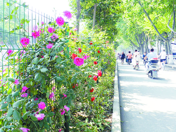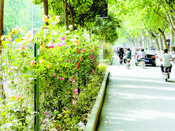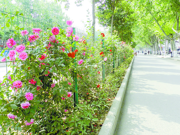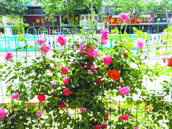 这几天,周口中心城区多条道路沿线的花儿绽放,有月季、蔷薇等,色彩艳丽,美不胜收,吸引不少市民观赏拍照。
