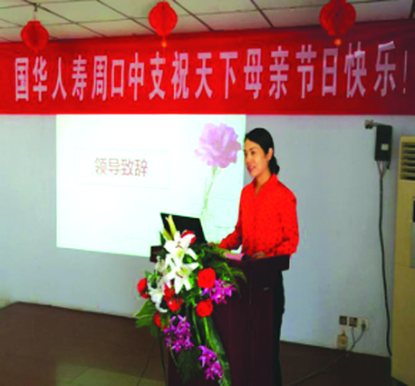 活动首先播放了儿女送给妈妈一句话的视频短片,让每一位母亲都感到非常温馨。视频短片播完后,国华人寿周口中支总经理谢亚丽表示,公司是个大家庭,在共同创业和奋斗的日子里,我们风雨同舟,用辛勤和智慧创造了骄人业绩。我们取得的每一点成绩,都与妈妈的鼓励和帮助密不可分。正是有了妈妈的支持和理解,我们才能全身心地投入到工作中,把我们的事业发展壮大。