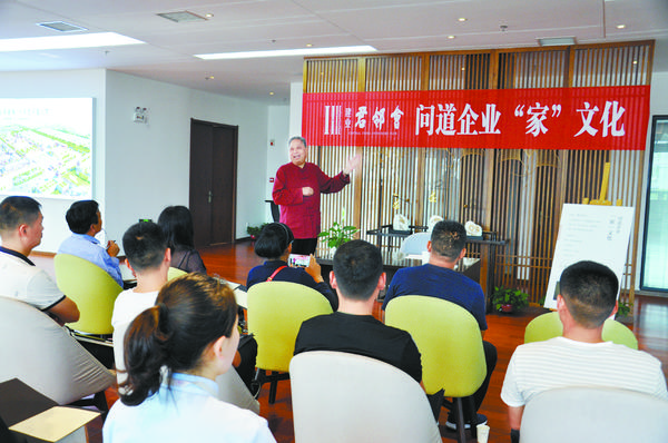本报讯 “家是最小国,国是千万家。家风的‘家’,是家庭的‘家’,也是国家的‘家’,家庭的命运与国家的命运紧密相连。”5月13日下午,中国道学论坛总编董延喜应建业君邻会之邀,在老子故里以“《道德经》中的家文化”为题,与君邻会会员分享了老子的家道、家教、家风文化。他就建业君邻会和人们在现实生活中遇到的问题和困惑,用老子文化为大家答疑解惑,让建业君邻会会员受益匪浅。