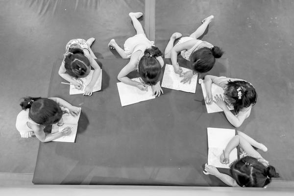 图2为小学员们在榕江县少年儿童业余体操运动学校内写训练日记(5月15日摄)。