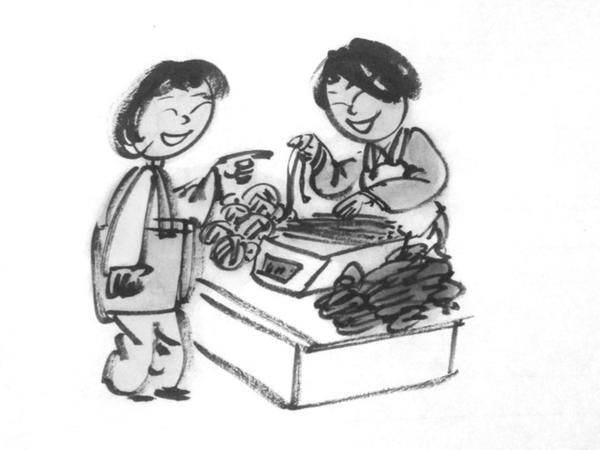 大个儿人爽快也健谈,我每到菜摊总要与她闲聊几句。日子久了,知道大个儿一家就住在集市一个楼上,一家大小八九口人,婆媳融洽、姑嫂和睦。