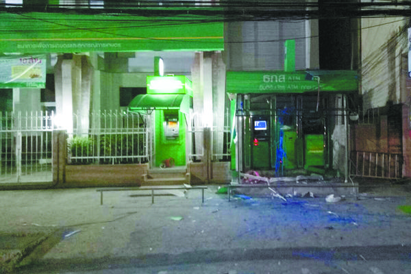 这是5月20日在泰国南部北大年府拍摄的遭到爆炸袭击的银行自动提款机。