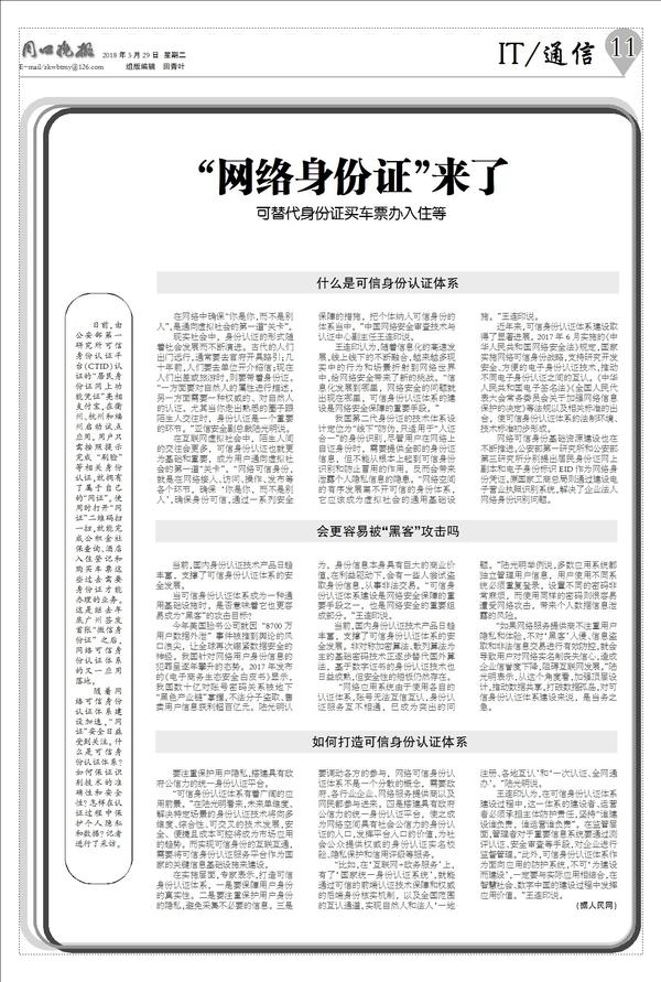 我国第二代身份证的技术体系设计定位为“线下”防伪,只适用于“人证合一”的身份识别,尽管用户在网络上自证身份时,需要提供全部的身份证信息,但不能从根本上起到可信身份识别和防止冒用的作用,反而会带来泄露个人隐私信息的隐患。“网络空间的有序发展离不开可信的身份体系,它应该成为虚拟社会的通用基础设施。”王连印说。