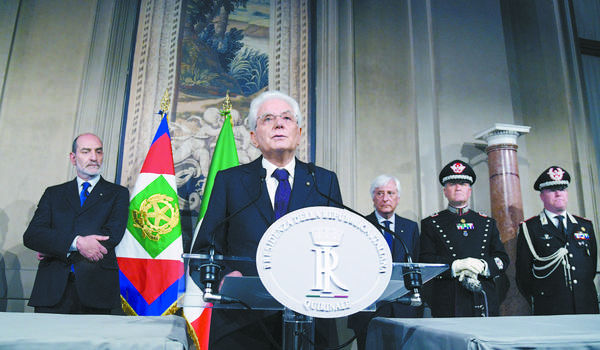 马塔雷拉随后在电视讲话中说,他不会支持一个有可能把意大利带出欧元区的人出任财政部长。马塔雷拉表示,意大利政局的不确定性已使近期金融市场震荡,这推高了意大利的借贷成本。