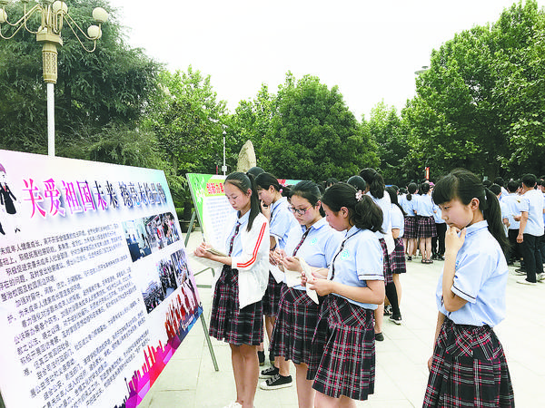 当日下午3时,同学们在检察官的带领下兴致勃勃地参观了周口市人民检察院精心制作的12块内容丰富、反映未成年人检察工作的主题宣传展板(如图),了解检察机关在未成年人检察方面所做的工作和取得的成效,上了一堂生动的以“校园欺凌、感恩教育”为主题的法治课。