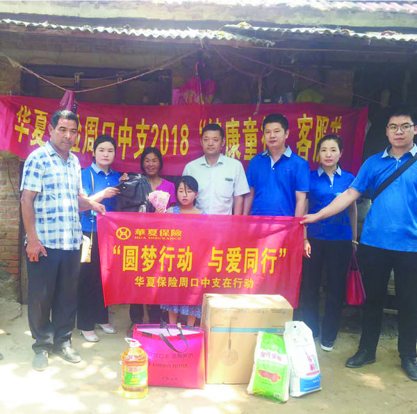 本报讯 华夏保险股份有限公司周口中心支公司认真落实精准扶贫政策,5月31日,该公司组成6支圆梦爱心队伍到各县、区开展2018“健康童行”客服节圆梦探访活动,为10名贫困儿童送去祝福和礼物,用华夏之爱守护他们的幸福成长。