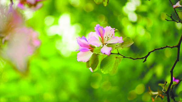 不是吗?在整个人生的长路上,不是都开着像羊蹄甲一样迷迷蒙蒙的花树吗?往前看过去的时候,总是看不真切,总是觉得笼罩着一层缥缈的烟雾,等到真的走到树下了,却又只能看到一朵一朵与远看时完全不同的单薄细润的花朵。只要稍微迟疑,风就吹过来,把它们一瓣一瓣地吹散,轻柔地拂过你的脸颊,在你的发间或者肩膀上留下一点淡淡的幽香,然后就静静地落在你身后的草丛里,逐渐褪色,逐渐消逝,静静地望着你向前走去,向着另外的一棵迷蒙的花树走去。
