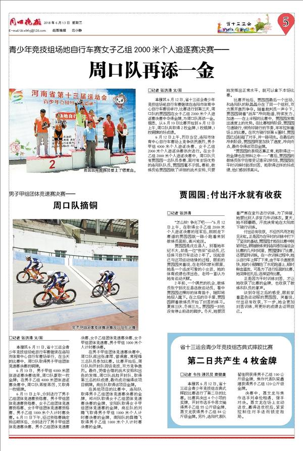 贾园园是沈丘县人,别看她年纪不大,却是一位“资深”运动员,已经练习自行车运动2年了。说起自己与这项运动结缘的过程,眼前的贾园园笑着说,在老师和家长眼里,她是一个活泼可爱的小女孩,她的体育成绩也很出色,老师一直认为她有运动天赋。