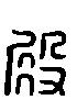 “殿”的左边由“尸”“共”构成一字,读为“tùn”,本义为屁股,可视为“臀”之省写;右边的“殳”,读为“shù”,其甲骨文为手持棍棒敲打形。左右合在一起表示在身后敲打,不见其动,只闻其声。故“殿”字的本义为“臀击之声也。”《说文·殳部》:“殿,击声也。”本义为身后打击声,引申指最后,殿后、殿军。