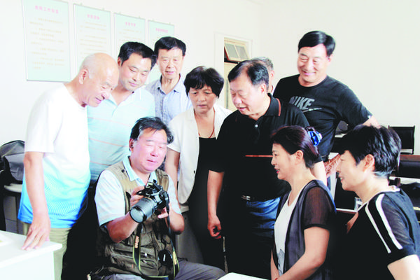 冯卫光退休后,积极参加我市大型摄影活动的策划与实施,2017年,他的《中国第一庙会——淮阳太昊陵庙会》影展入选第八届都匀国际摄影博会。几年来,他在周口市老干部大学担任摄影高级班教师,答疑解惑,热情培养摄影新人,为自己喜欢的摄影事业付出了所有的热情和力量。图为拿着相机的冯卫光在和摄影爱好者交流心得。 通讯员 葛英 摄