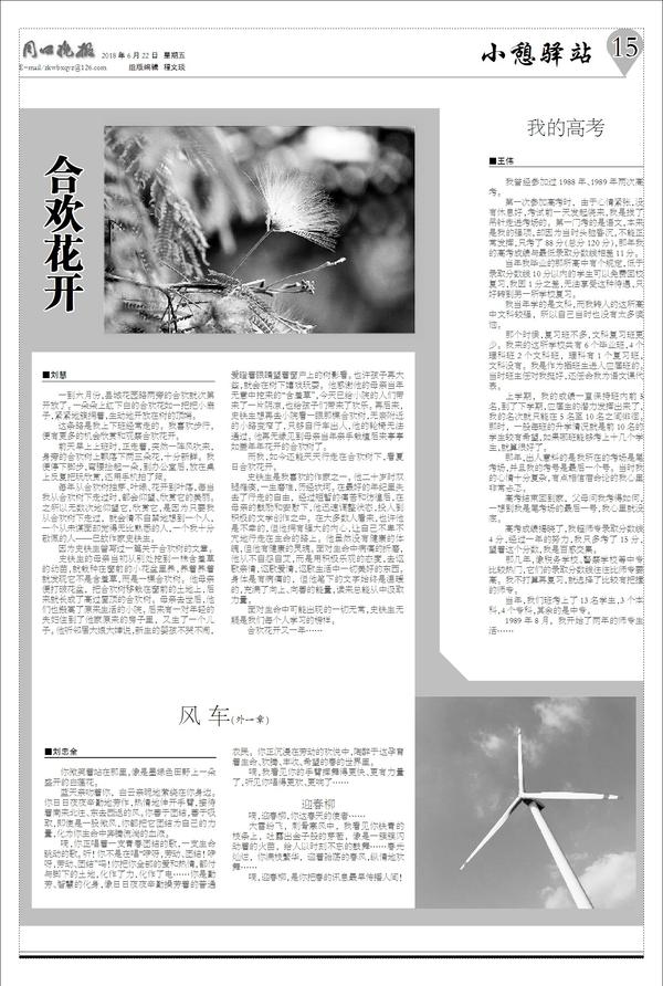 每年从合欢树抽芽、叶绿、花开到叶落,每当我从合欢树下走过时,都会仰望、欣赏它的美丽。之所以无数次地仰望它,欣赏它,是因为只要我从合欢树下走过,就会情不自禁地想到一个人,一个从未谋面却觉得无比熟悉的人,一个我十分敬佩的人——已故作家史铁生。