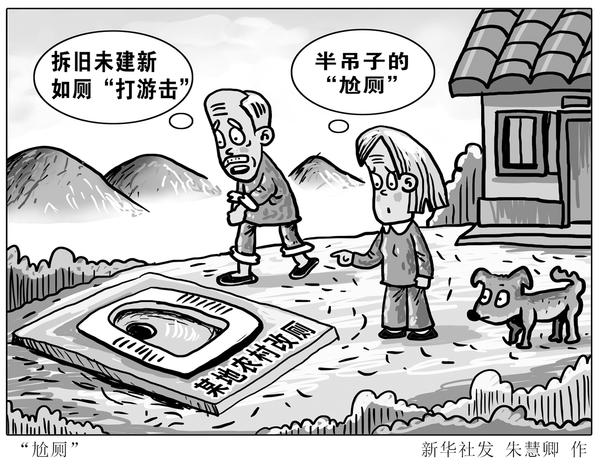 “小康不小康,厕所算一桩”。“厕所革命”让群众用上了卫生的厕所,成为最贴心的精准扶贫。当前,我国进入脱贫攻坚关键阶段,乡村振兴稳步推进,坚决推进农村厕所改造对新农村建设具有标志性意义。 但记者调查发现,中央高度重视并不断出台相关方案及措施的农村改厕,在一些地方却“变了味儿”,出现了半吊子的“尬厕”——没墙、没顶,只有个蹲便器。 新华社发 朱慧卿 作