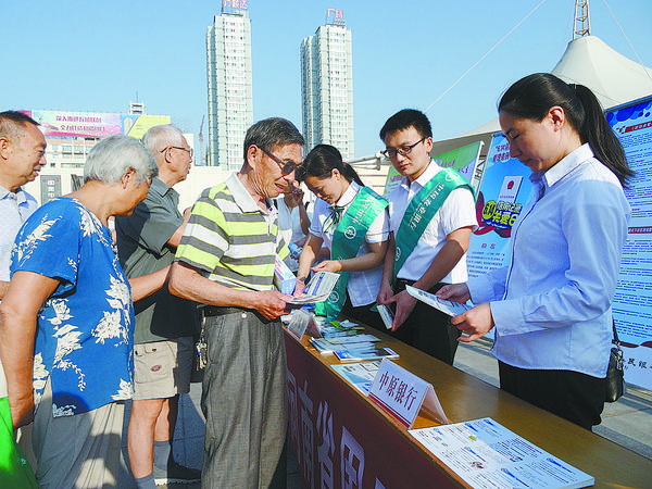 为进一步拓宽征信知识宣传的广度和深度,推动社会信用体系建设,近日,农行周口分行在人民银行周口中心支行统一组织下,开展“信用记录关爱日”暨《征信业管理条例》颁布5周年专题宣传活动。市县两级农行在营业网点张贴横幅、海报,播放微电影,组织员工在社区、商场等人员集中的场所摆放宣传展板、设立咨询服务点,发放宣传彩页、赠送宣传小扇子,进一步增强社会公众的信用意识和信息保护意识。图为银行工作人员在中心城区五一文化广场向过往市民发放宣传彩页。